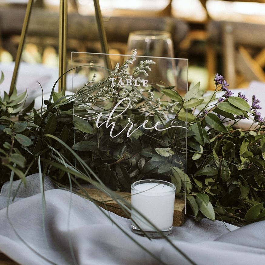 Rental & Décor Collection We invite you to explore our artful selection of hand-sourced rental items that will inspire creativity and elevate what’s possible at your destination wedding. Rental & Décor Collection Signage Acrylic Clear Table Numbers Search