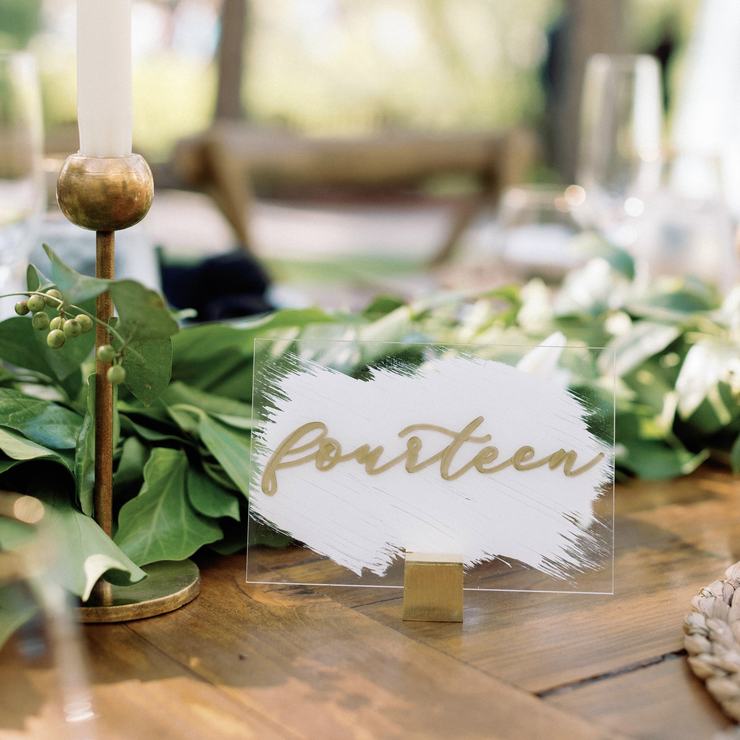 Rental & Décor Collection We invite you to explore our artful selection of hand-sourced rental items that will inspire creativity and elevate what’s possible at your destination wedding. Rental & Décor Collection Signage Acrylic White Brush Stroke Table Numbers (S) Search